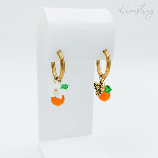 Gold Plated Orange Blossom & Bee Huggie Earrings