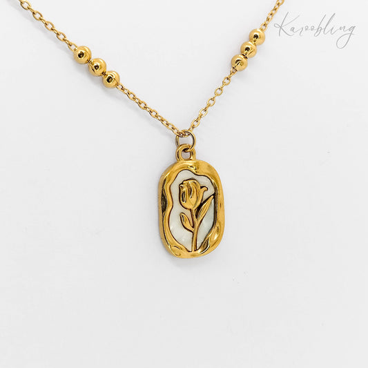 18K Gold-Plated Flower Shell Insert Pendant Necklace
