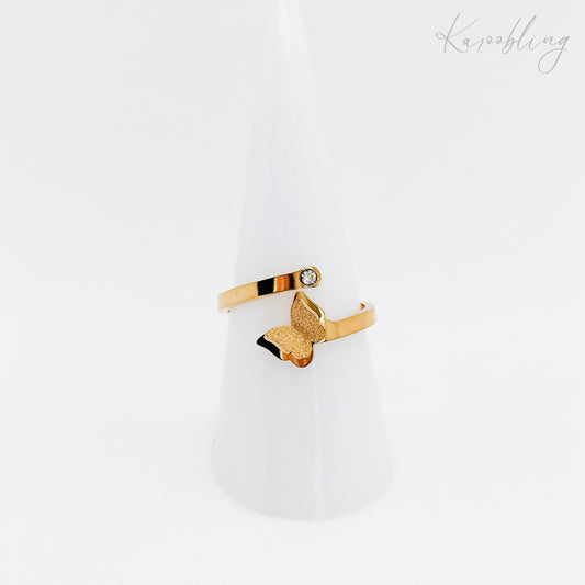 Gold Plated Glitzy Butterfly Wrap Around Adjustable Ring