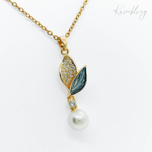 18K Gold Plated Ethereal Leaves & Pearl Pendant Necklace