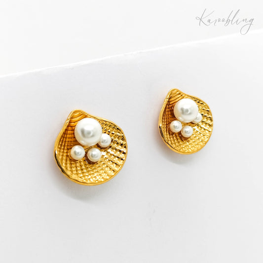 18K Gold Plated Pearl-Embrace Shell Stud Earrings