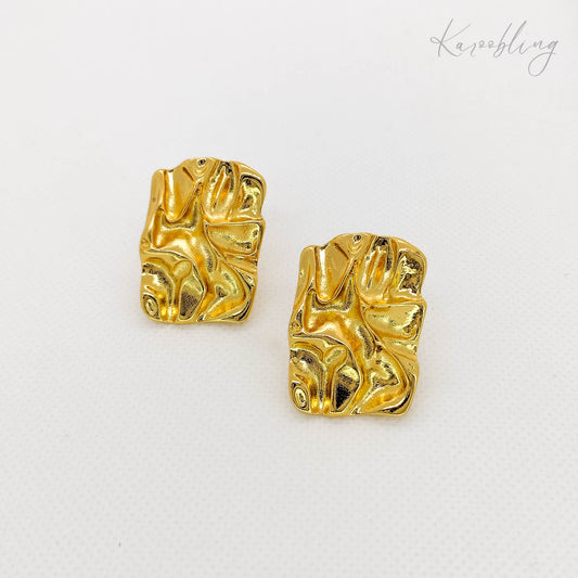 18K Gold Plated Hammer Rectangular Stud Earrings