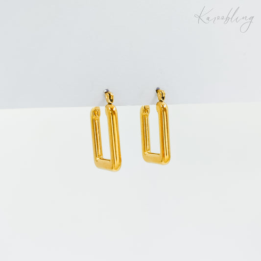 18K Gold Plated Chunky Rectangular Hoop Earrings