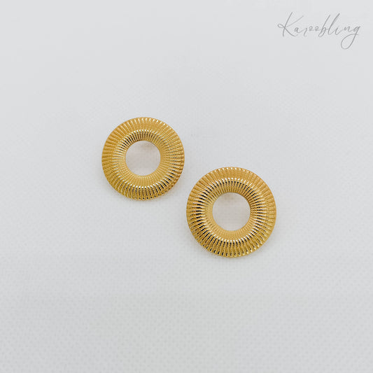 18K Gold Plated Ribbed Open Circle Stud Earrings