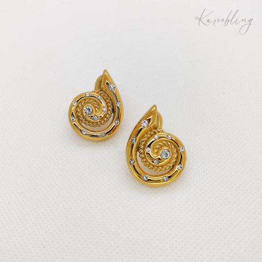 18K Gold Plated Spiral Shell Luxe Stud Earrings