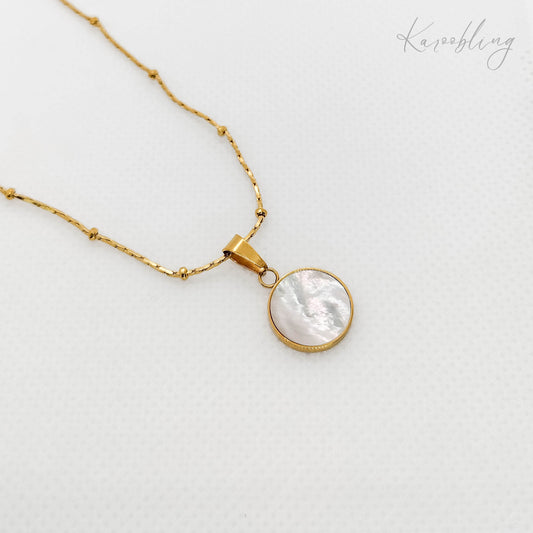 18K Gold Plated Mother of Pearl Disc Pendant Necklace