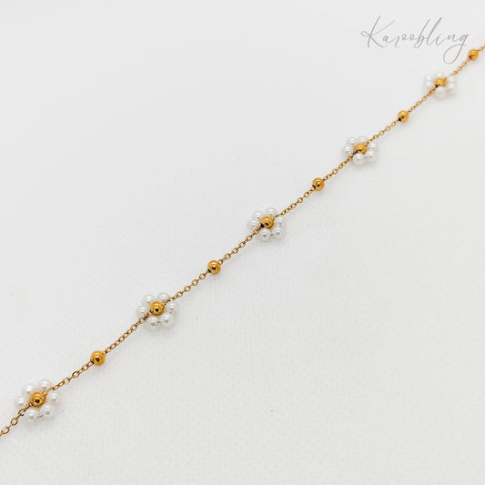 18K Gold Plated Pearly Beaded Daisy Delicate Chain Bracelet