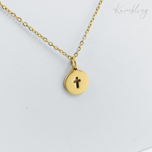 Gold Plated Cross Cut-Out Disk Necklace