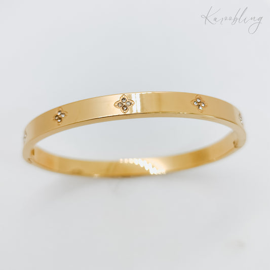 Gold Plated Lucky Clover Cuff Bangle