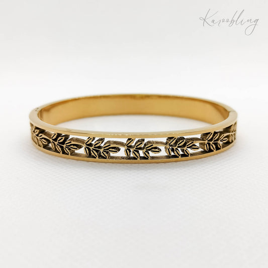18K Gold Plated Leaf Cut-Out Bangle