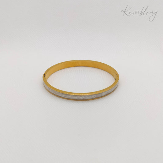18K Gold Plated Marbled White Banded Bangle