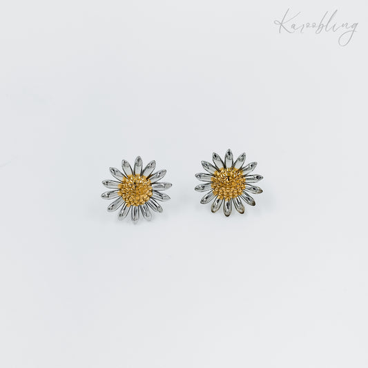 Mixed Metal Sunflower Stud Earrings