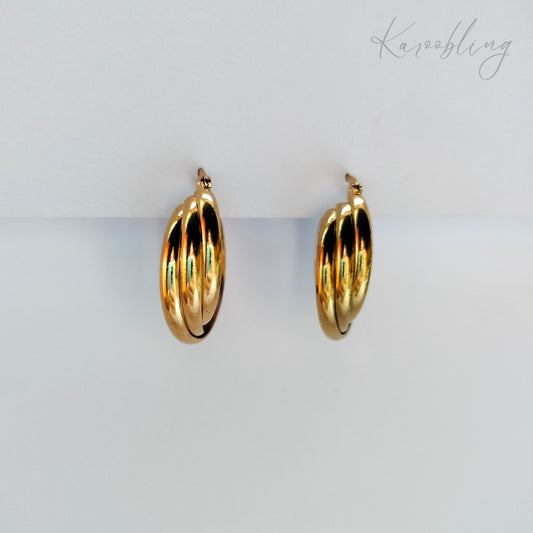 18K Gold Plated Twisted Triplets Hoop Earrings