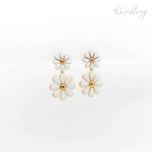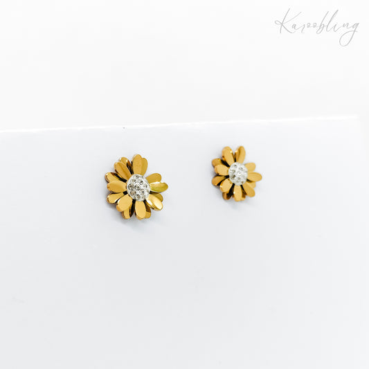 18K Gold Plated Two-Tone Daisy Stud Earrings