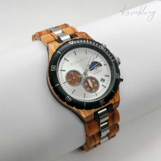 Zebrawood Eclipse Moon Phase Men's Wooden Watch