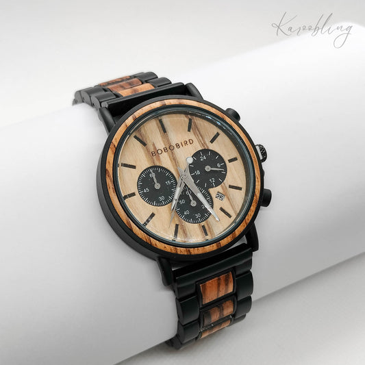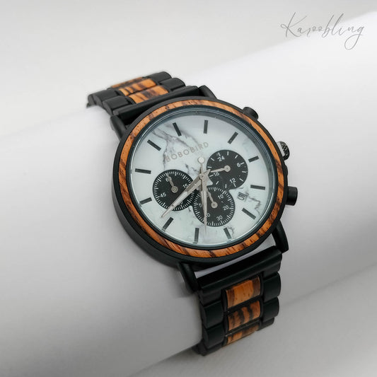 Zebrawood & Marbled Dial Men's Wooden Watch